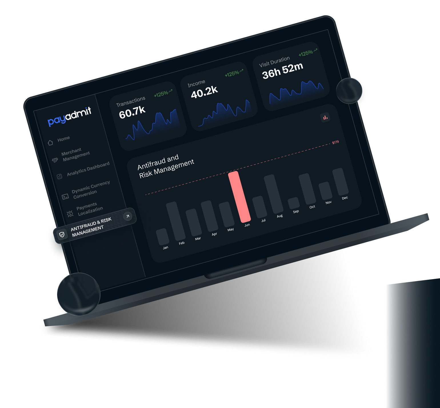 At PayAdmit, we offer a payment fraud detection system with a large number of settings, which can be adjusted to your business needs. If the fraud control detects a suspicious payment, it automatically rejects it and sends you a notification.