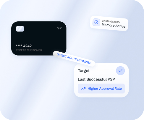 When a card completes a successful transaction through a specific PSP, the software stores that routing result. On the next payment from the same card, the transaction skips cascading logic and routes directly to the last successful provider. This increases repeat-card approval rates without any manual configuration by the merchant.